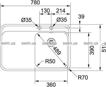 - Диаметр сливного отверстия 3 1/2" с интегрированным вентилем-эксцентриком