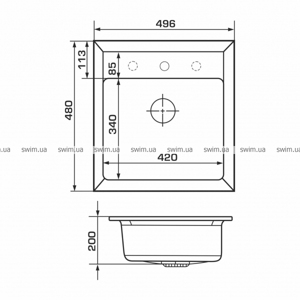 - Размеры мойки (ШхДхВ), мм: 496х480х200