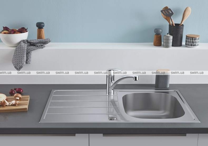Мойка изготовлена из нержавеющей стали марки GROHE StarLight AISI 304, что делает ее долговечной и визуально привлекательной. Система GROHE QuickFix обеспечивает быструю и простую установку и не требует дополнительного оборудования (классический монтаж с профилем 7 мм).