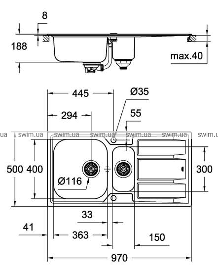 Добавьте на свою кухню нотку практичной роскоши благодаря мойке GROHE K400 с 2 чашами из нержавеющей стали и эксцентриком. Два подготовленных отверстия под смеситель делают мойку полностью оборачиваемой. Мойка предлагает большое внутреннее пространство, а глубина основной чаши составляет 18.5 см, что предоставляет огромное количество возможностей для работы.