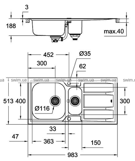 Добавьте на свою кухню нотку практичной роскоши благодаря мойке GROHE K400+ с 2 чашами из нержавеющей стали и эксцентриком. Два подготовленных отверстия под смеситель делают мойку полностью оборачиваемой. Мойка предлагает большое внутреннее пространство, а глубина основной чаши составляет 18.8 см, что предоставляет огромное количество возможностей для работы.