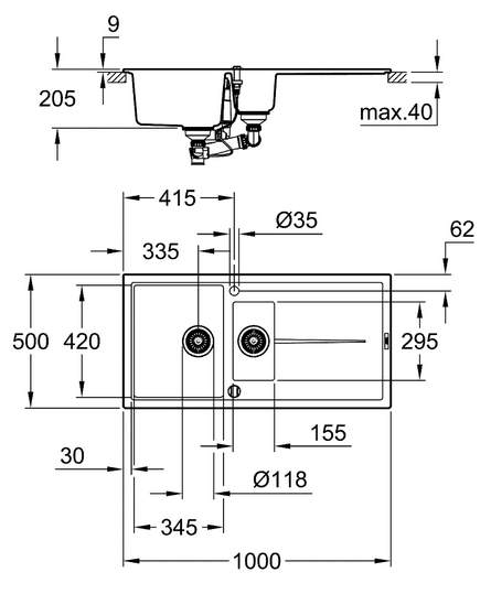 Изящная мойка в современном, космополитичном композите, GROHE K400 сохранит свой внешний вид спустя многие годы работы.