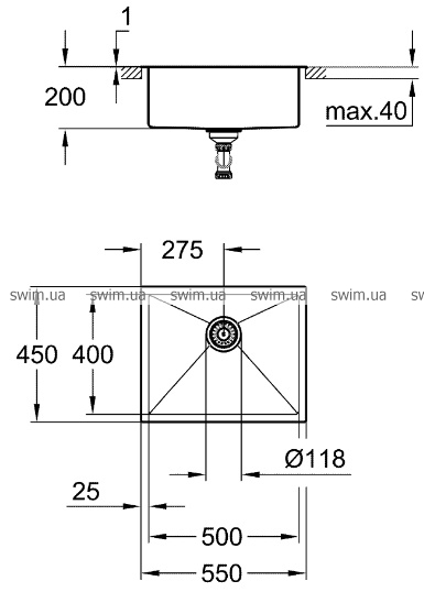 - Минимальная ширина тумбы под мойкой : 600 мм
