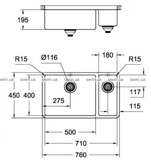 - Высота мойки, см: 19.5
