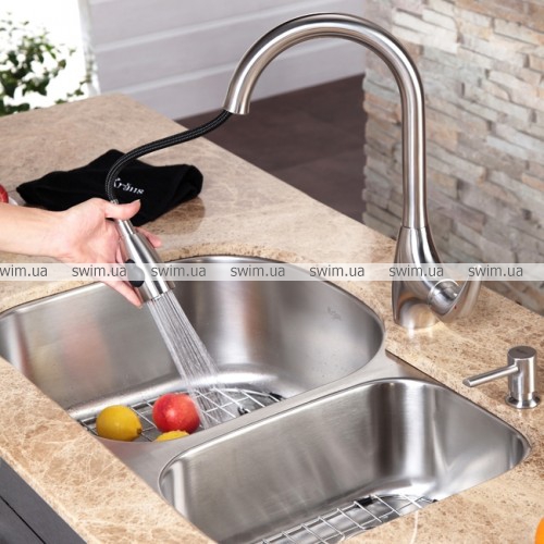 - Для удобства работы внутреннее пространство мойки разделено на две чаши
