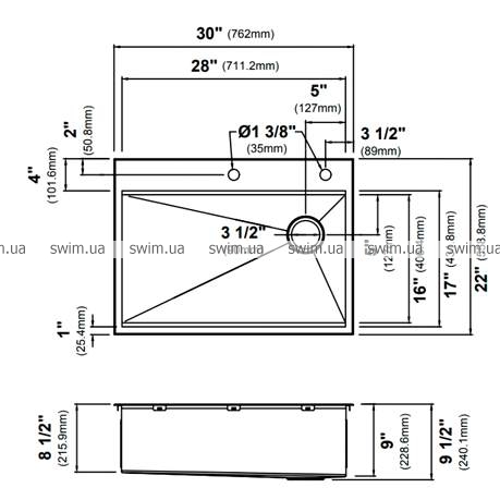 Габариты (ШхГхВ) / Диаметр мойки: 76.2 х 55.88 х 24.01 см