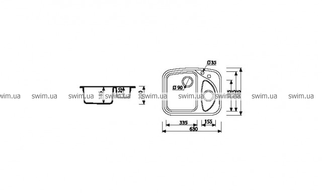 - Размер чаши: 155х335х120, 335х335х185 мм