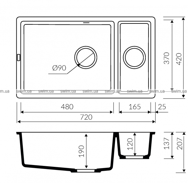 • Размер чаши: 480x370x190/165x370x120 мм