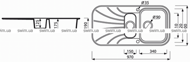 - Размер чаши: 320x420x175 мм, 150х310х125 мм