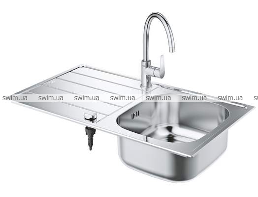 Для идеального сочетания с мойкой (31552SD1), в комплект входит однорычажный смеситель GROHE BauEdge (31367001).