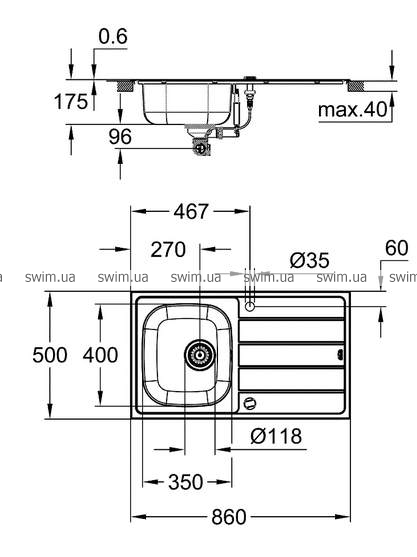 Мойка изготовлена из нержавеющей стали марки GROHE StarLight AISI 304, что делает ее долговечной и визуально привлекательной. Система GROHE QuickFix обеспечивает быструю и простую установку и не требует дополнительного оборудования (классический монтаж с профилем 7 мм).