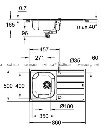 Мойка из нержавеющей стали GROHE K300 имеет два предварительно просверленных отверстия под смеситель, что означает, что она полностью оборачиваемая (возможен как левый так и правый монтаж).
