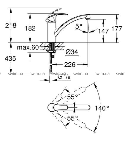 Чтобы идеально сочетаться с мойкой, в комплект входит однорычажный смеситель GROHE Eurosmart (33281002). Наклонный излив делает его идеальным для средней высоты емкостей, а излив с поворотом на 140 ° обеспечивает максимальную гибкость при их наполнении.