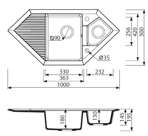 - Размер: 1000х500х195 мм