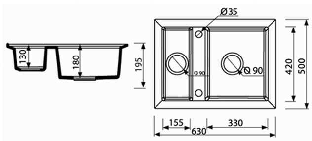 - Размер чаши: 155х420х130, 330х420х180 мм