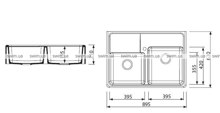 • Размер чаш: 395х355х185 мм, 395х420х185 мм