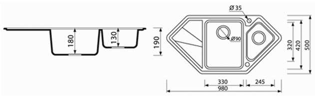 - Размер чаши: 330x420x180 мм, 245х320х130 мм