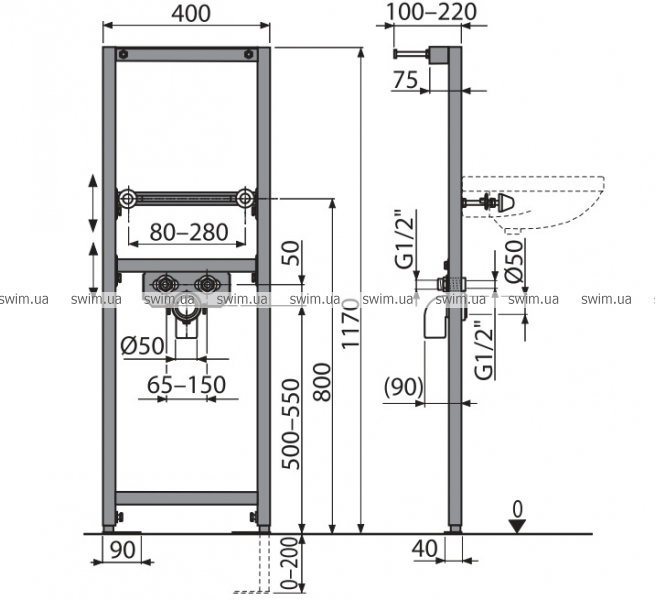 A104/1200 МОНТАЖНАЯ РАМА ДЛЯ УМЫВАЛЬНИКА