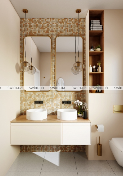 Така мозаїка призначена для оздоблення стін у приміщеннях. Вона відрізняється вишуканим золотим кольором і може надати ванній особливу шляхетність. Золоті тони чудово виглядають в інтер'єрі, оформленому в стилі арт-деко, бароко, рококо, ампір тощо.