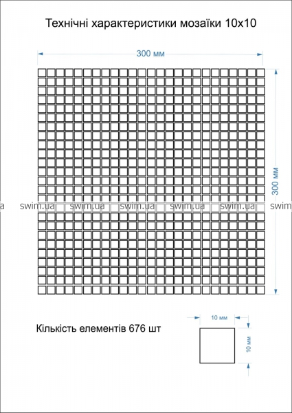 - Форма елемента мозаїки: Квадрат (10×10 мм)