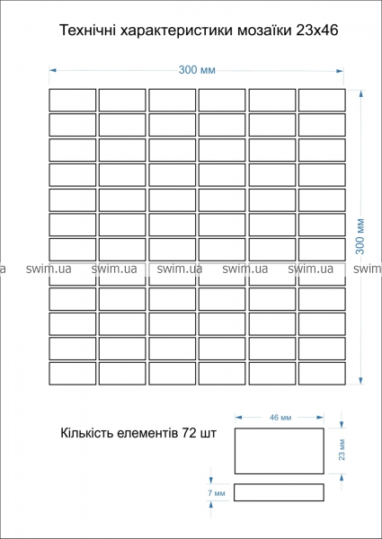 - Форма елемента мозаїки: Прямокутник (23×46 мм)