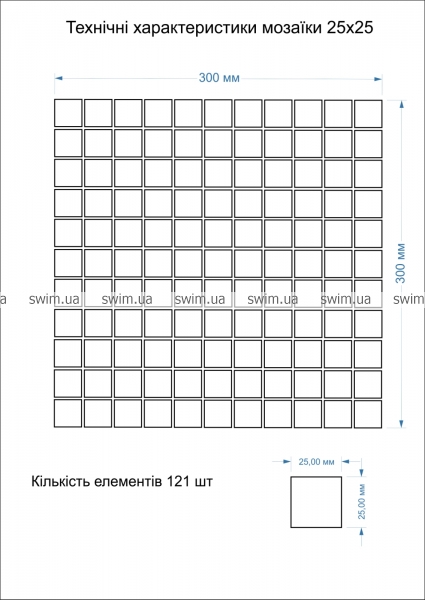 - Форма елемента мозаїки: Квадрат (25×25 мм)