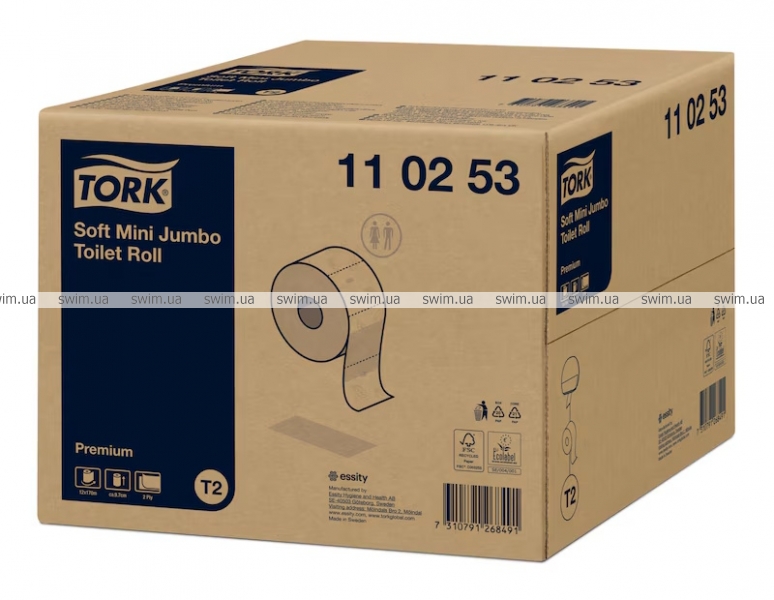 Система видачі туалетного паперу у мінірулонах Tork Mini Jumbo, яка забезпечує ефективність і зменшення витрат, пропонує набагато більше туалетного паперу, ніж стандартні рулони. Двошаровий туалетний папір у рулонах Tork Mini Jumbo Premium має чудовий зовнішній вигляд та забезпечує максимальну ефективність, а також підходять для розміщення у місцях з середньою та високою відвідуваністю.