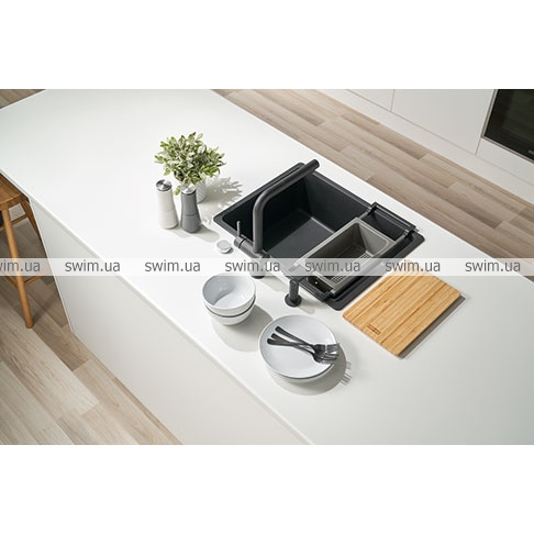All-In – це аксесуари, які революціонізують вашу мийну зону та покращать щоденне приготування, приготування їжі та прибирання. Завдяки універсальній та інноваційній системі ваше миття перетвориться на надзвичайно комфортне робоче місце, але стане стильним елементом на вашій кухні. All-In був розроблений, щоб заощадити ваш час та простір! Тепер ви можете мати все в одному місці завжди під рукою.