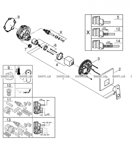 - комплект верхньої монтажної частини для GROHE Rapido SmartBox 35600000