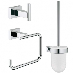 Комплект аксессуаров GROHE Essentials Cube включает в себя: крючок для халата, держатель туалетной бумаги, И туалетный ершик настенного монтажа, все аксессуары выполнены с применением хромового покрытия. Комплект имеет простой неустаревающий дизайн и отличное качество. Сделайте вашу ванную комнату более привлекательной.