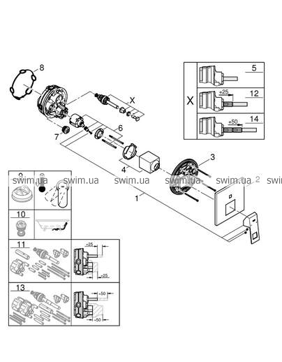 - комплект верхней монтажной части для GROHE Rapido SmartBox 35600000
