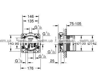Обратите внимание! Верхнюю монтажную часть данного смесителя необходимо дополнительно укомплектовать скрытой частью GROHE Rapido SmartBox 35600000.