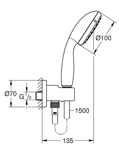 • Подключение для душевого шланга 1/2 дюйма с держателем ручного душа (28679)