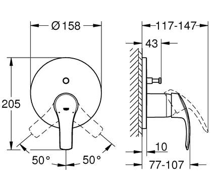 Однорычажный смеситель на 2 выхода GROHE Eurosmart - это не только стильный внешний вид, а и высококачественное внутреннее наполнение. Дизайнерское решение в виде плавно изогнутого металлического рычага и тонкой настенной панели диаметром 158 мм и толщиной 10 мм придает всей конструкции легкость и лаконичность.