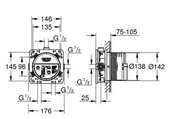 Обратите внимание! Верхнюю монтажную часть данного смесителя необходимо дополнительно укомплектовать скрытой частью GROHE Rapido SmartBox 35600000.