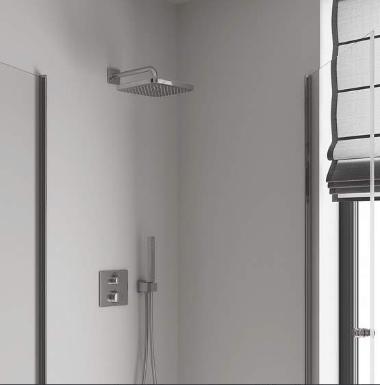 Абсолютно простой и понятный механизм управления GROHE AquaDimmer® позволит с легкостью переключатся между режимами верхнего и ручного душа. С ним также легко регулировать напор воды, попутно контролируя объем ее потребления. Поддержанию температуры на заданном комфортном уровне способствует технология GROHE TurboStat®, а стопор безопасности на отметке 38°C GROHE SafeStop® убережет вас от резкого потока горячей воды, сводя к минимуму вероятность получения ожогов.