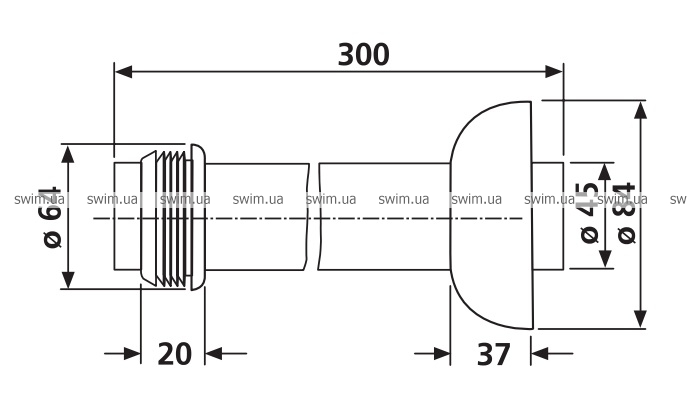 - В комплект поставки входит: смывная труба белого цвета 45х300 мм, манжетное уплотнение и декоративная насадка белого цвета, внутренний диаметр 45 мм