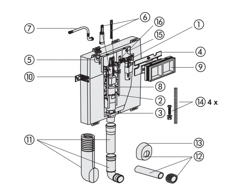 Набор для подключения к смывному бачку Sanit CC-80-M-FO-2V-L для скрытого монтажа со средним ревизионным отверстием и глубиной монтажа - 8 см