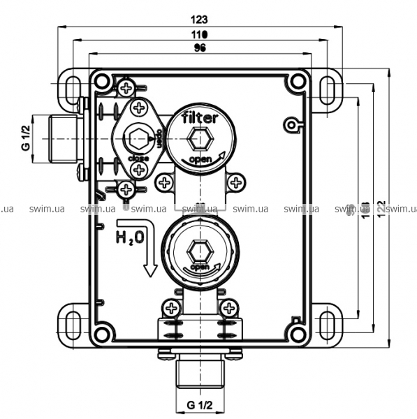 В комплекте: с монтажной коробкой и заглушками для фильтра и клапана