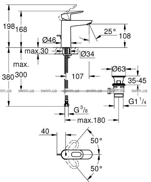 - автоматический переключатель: ванна или душ