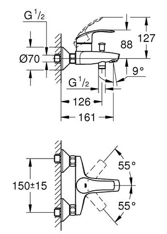 EUROSMART смеситель однорычажный для ванны (33300002)