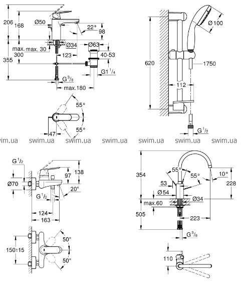 → Набор смесителей 4 в 1 для ванны и кухни Grohe Eurosmart Cosmopolitan 126115MK