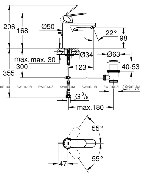 - возможность установить минимальный расход воды прибл. 2.5 л / мин