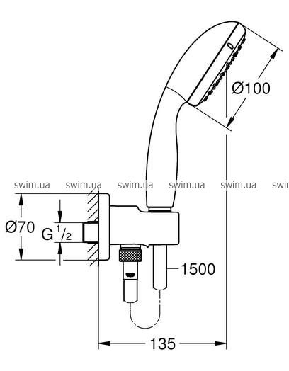 • Подключение для душевого шланга 1/2 дюйма с держателем ручного душа (28679)