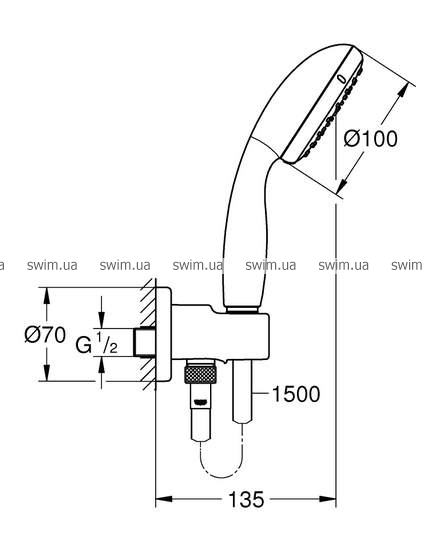 - ShockProof силиконовое кольцо, предотвращающее повреждение поверхности при падении ручного душа