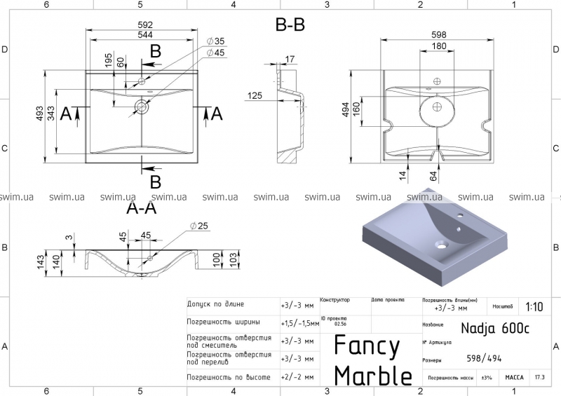 Умивальник Fancy Marble Nadja 600 206103