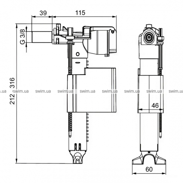 → Наповнюючий механізм 3/8 Roca Duplo AV0025600R, бічне підключення для бачка інсталляції