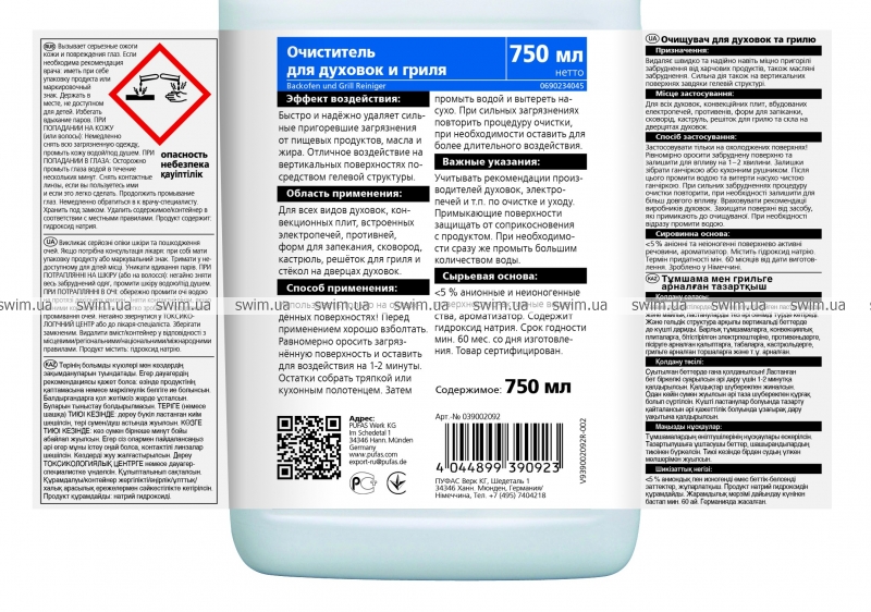 Для очищення всіх духовок, конвекційних плит, вбудованих електропечей, протвинів, форм для запіканки, сковорід, каструль, грат для гриля, склокераміки та скла на дверцятах духовок.