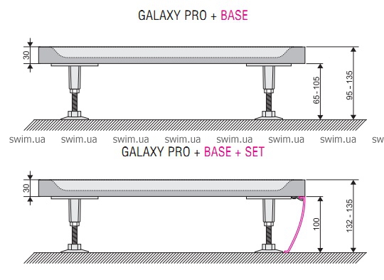 При установке душевых поддонов Galaxy Pro на уже готовый (облицованный) пол можно использовать набор Base Galaxy Pro. Комплект содержит 5 шт. ножек, включая винты для их прикрепления, и позволяет установку поддона до требуемой высоты.
