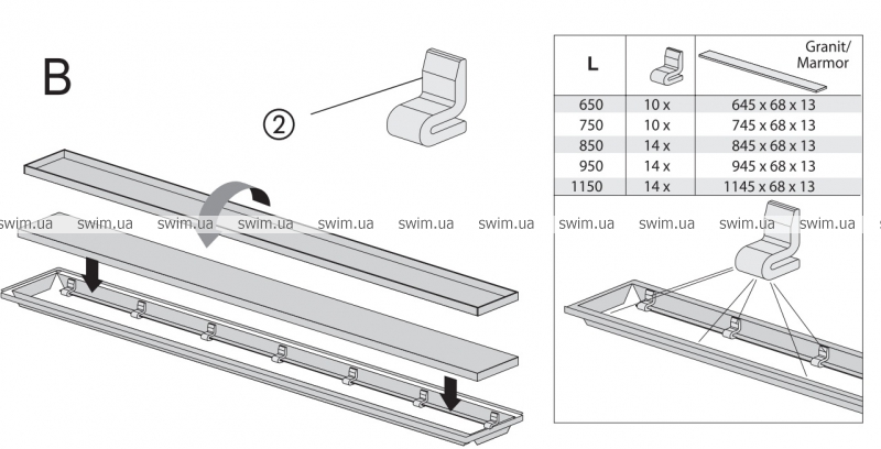 SANIT Опорный элемент (14 шт.) для дренажного канала с последующей облицовкой плиткой
